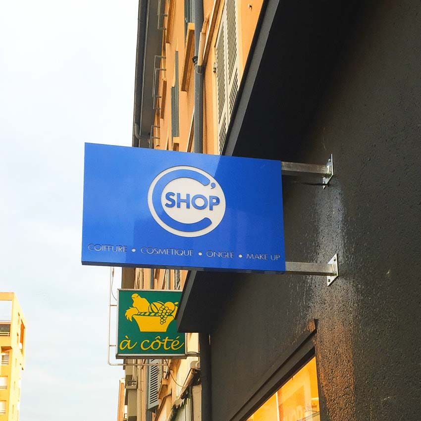 L’enseigne drapeau vous permet un excellent repérage, même de loin. Elle participe entièrement à votre stratégie de communication. C’est pourquoi nous vous proposons plusieurs types d’enseignes: caisson, en tôle travaillée, en Inox ou en dibond, lumineuse ou non…