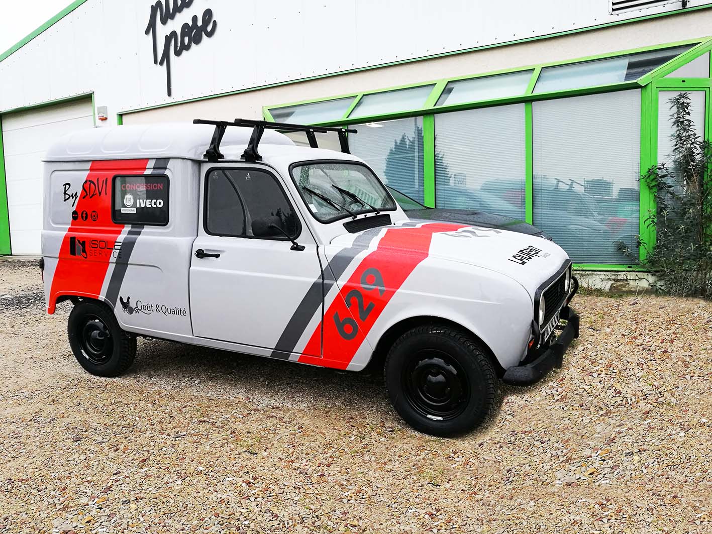 Le Raid 4L Trophy est une aventure humaine, sportive et solidaire, en cette année 2018 nous avons le plaisir d’y participer avec la voiture 629. Nous avons réalisé le covering du véhicule en adhésif conformable teinté masse notamment pour les bandes rouges et grises, il a fallu faire preuve de technicité pour que l’adhésif épouse toutes les formes du véhicule. Nous avons ensuite ajouté les logos de toutes les entreprises participantes avec un adhésif découpé. Équipée de tous ces sponsors notre 4L peut débuter la course et qui sait, peut-être la remporter !